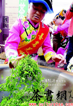 北川是四川西部产茶区之一,自古盛产茶叶,北川民间传统手工制茶更是源远流长。吴红,羌族,家住北川任家坪大水村,今年41岁,北川手工茶制作传承人。据了解,因祖上历代以传统手工制茶谋生,吴红从小耳濡目染,跟着爷爷、父亲学会了手工制茶手艺。“5·12”特大地震让吴红失去了老公、婆婆和儿子,但她没有被痛苦打倒。震后,在各级政府的关心帮助下,吴红带领村民成立了一家茶叶合作社,要把北川手工茶发扬光大。