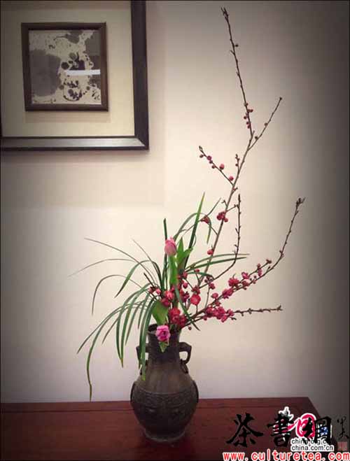 品茶,品的是一种心境,茶道之美不过是烧水点茶之间。花道亦如此,不追求华丽的花之美,更注重自然情趣;花枝不必多,以姿和质取才,清高雅趣、师法自然便可。