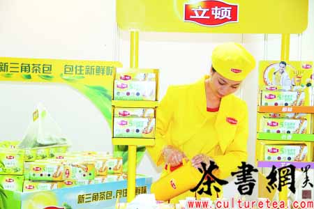 立顿的服务人员为消费者冲泡茶。