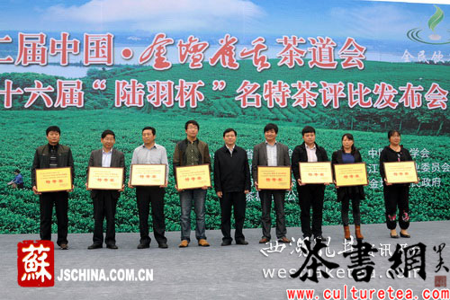 中国江苏网讯(记者毕庆元 通讯员 陈新 王珊)2014年4月26日,第二届中国金坛雀舌茶道会精彩开幕。开幕式上第十六届江苏省“陆羽杯”名特茶在金坛揭晓,“金坛雀舌”等5只金坛茶品牌获特等奖。