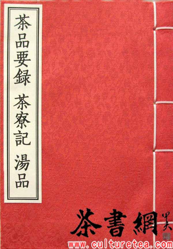 《品茶要录》是黄儒著于宋代熙宁八年(1075年)的一部茶学专著,收录于《中国宋代茶书》。全书十篇; 一至九篇论制造茶叶过程中应当避免的采造过时、混入杂物、蒸不熟、蒸过熟,烤焦等问题;第十篇讨论选择地理条件的重要。《茶寮记》是明代陆树声所著,全书共约500字。园居敞小寮于啸轩埤垣之西,中设茶灶,凡瓢汲罂注濯拂之具咸庀。择一人稍通茗事者主之,一人佐炊汲。客至则茶烟隐隐起竹外。其禅客过从予者,每与余相对,结跏趺坐,啜茗汁,举无生话。终南僧明亮者,近从天池来。饷余天池苦茶,授余烹点法甚细。余尝受其法于阳羡士人,大率先火候,其次候汤,所谓蟹眼鱼目,参沸沫沉浮以验生熟者,法皆同。而僧所烹点绝味清,乳面不黟,是具人清净味中三昧者。要之,此一味非眠云跛石人未易领略。余方远俗,雅意禅栖,安知不因是,遂悟人赵州耶。时杪秋既望,适园无诤居士与五台僧演镇、终南僧明亮,同试天池茶于茶寮中谩。《湯品》明代周履靖所著,湯足以掌握茶的優劣,本書將陸羽《茶經》中對茶的煮法,衍釋成十六種:將口沸程度分成三種,注法緩急則分三種,茶器種類不同分爲五種,依薪炭燃料亦可分爲五種,共計十六湯品。此书为三种书合为一册,《茶品要录》16页,《茶寮记》14页,《汤品》10页,32开,米色仿古纸,手工布面影印线装、精制影印、传统工艺线装.高级锦绫布面书皮装帧。